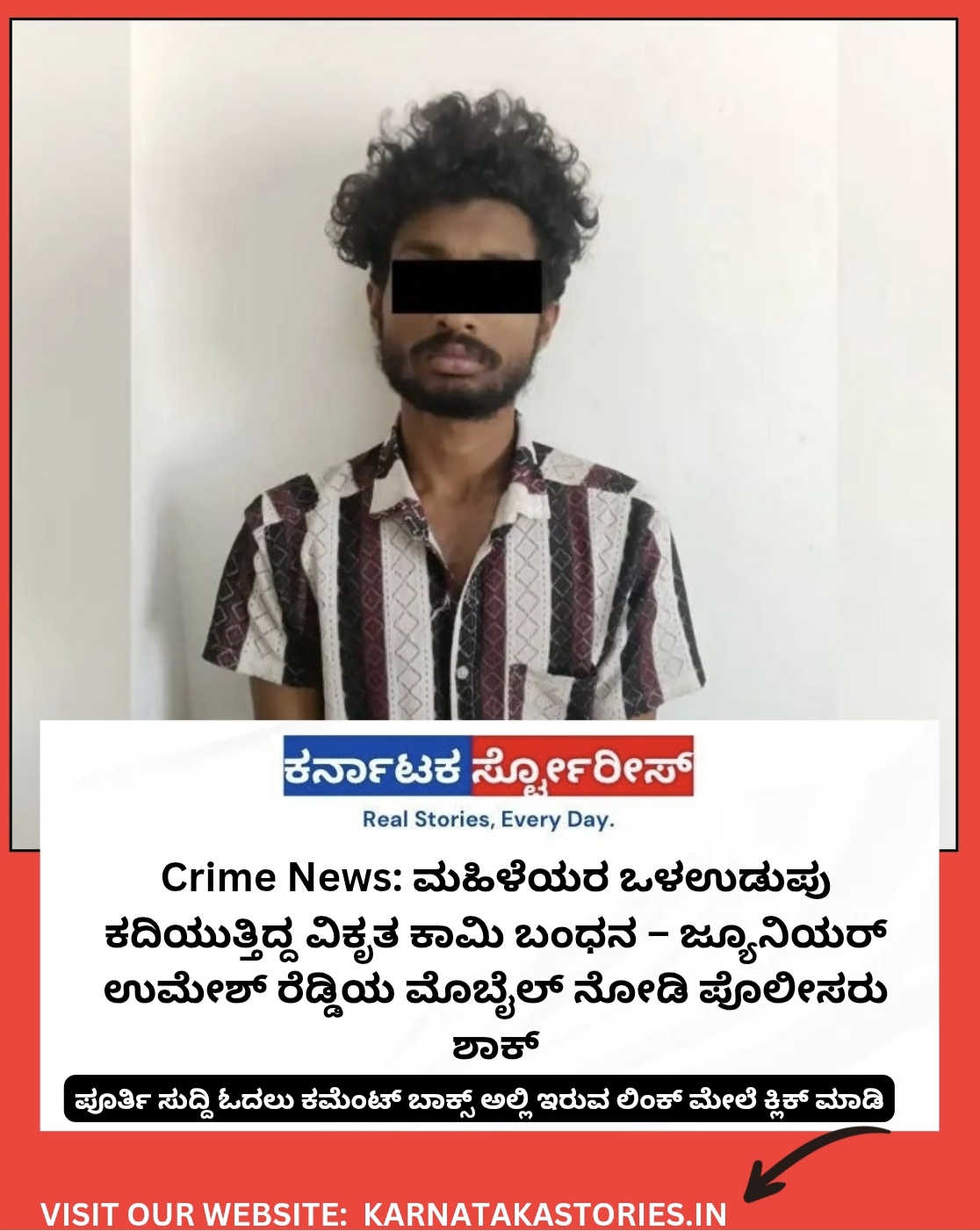 ಬೆಂಗಳೂರು: ಮಹಿಳೆಯರ ಒಳ ಉಡುಪು ಕದಿಸಿರುವ ವಿಕೃತಿ ಕಾಮಿ ಬಂಧನ