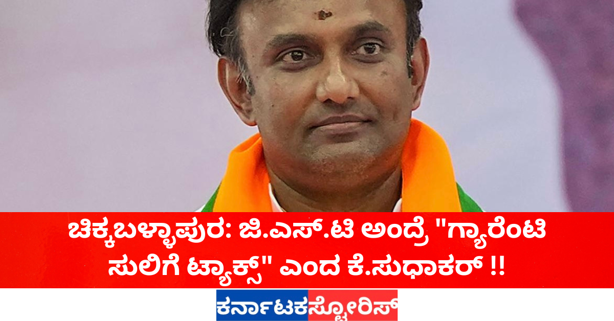 ಚಿಕ್ಕಬಳ್ಳಾಪುರ: ಜಿ.ಎಸ್.ಟಿ ಅಂದ್ರೆ “ಗ್ಯಾರೆಂಟಿ ಸುಲಿಗೆ ಟ್ಯಾಕ್ಸ್” ಎಂದು ಸಂಸದ ಕೆ.ಸುಧಾಕರ್ ರಾಜ್ಯ ಸರ್ಕಾರದ ವಿರುದ್ಧ ವಾಗ್ದಾಳಿ!!