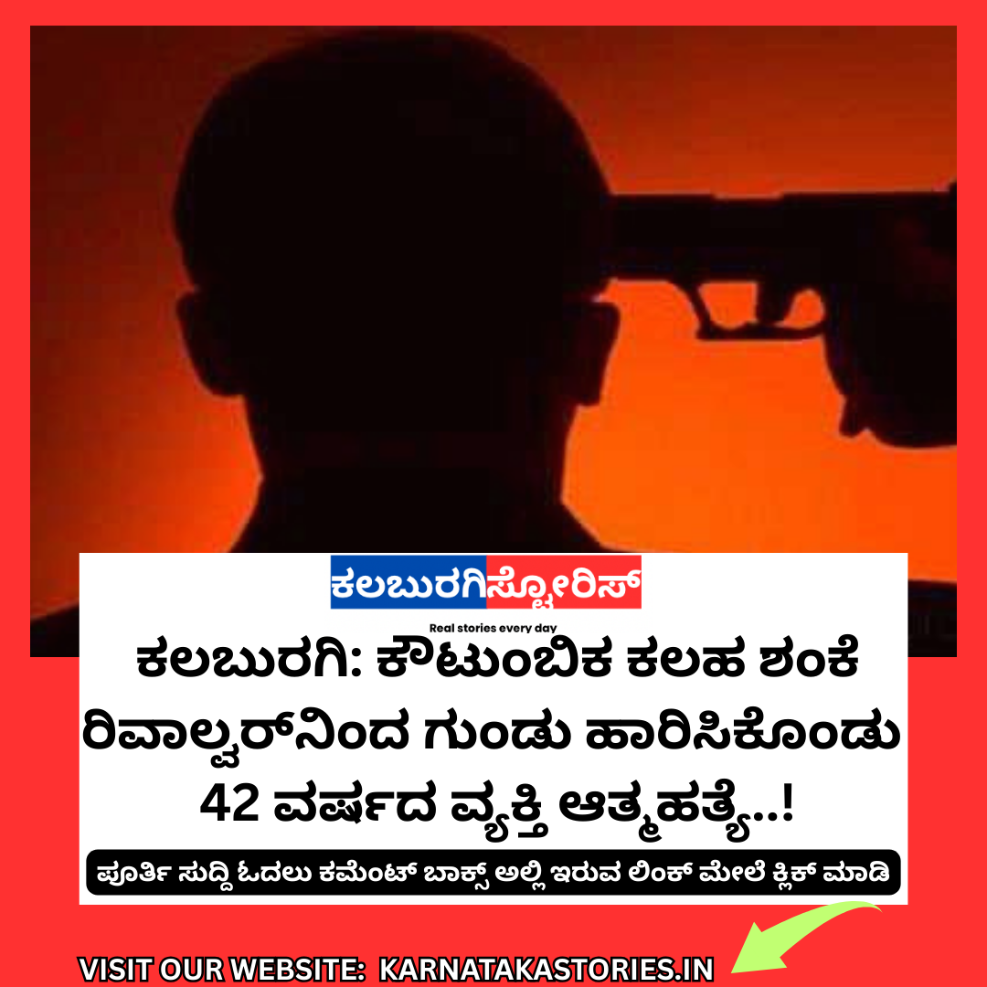 ಕಲಬುರಗಿ: ಕೌಟುಂಬಿಕ ಕಲಹ ಶಂಕೆ – ರಿವಾಲ್ವರ್‌ನಿಂದ ಗುಂಡು ಹಾರಿಸಿಕೊಂಡು 42 ವರ್ಷದ ವ್ಯಕ್ತಿ ಆತ್ಮಹತ್ಯೆ