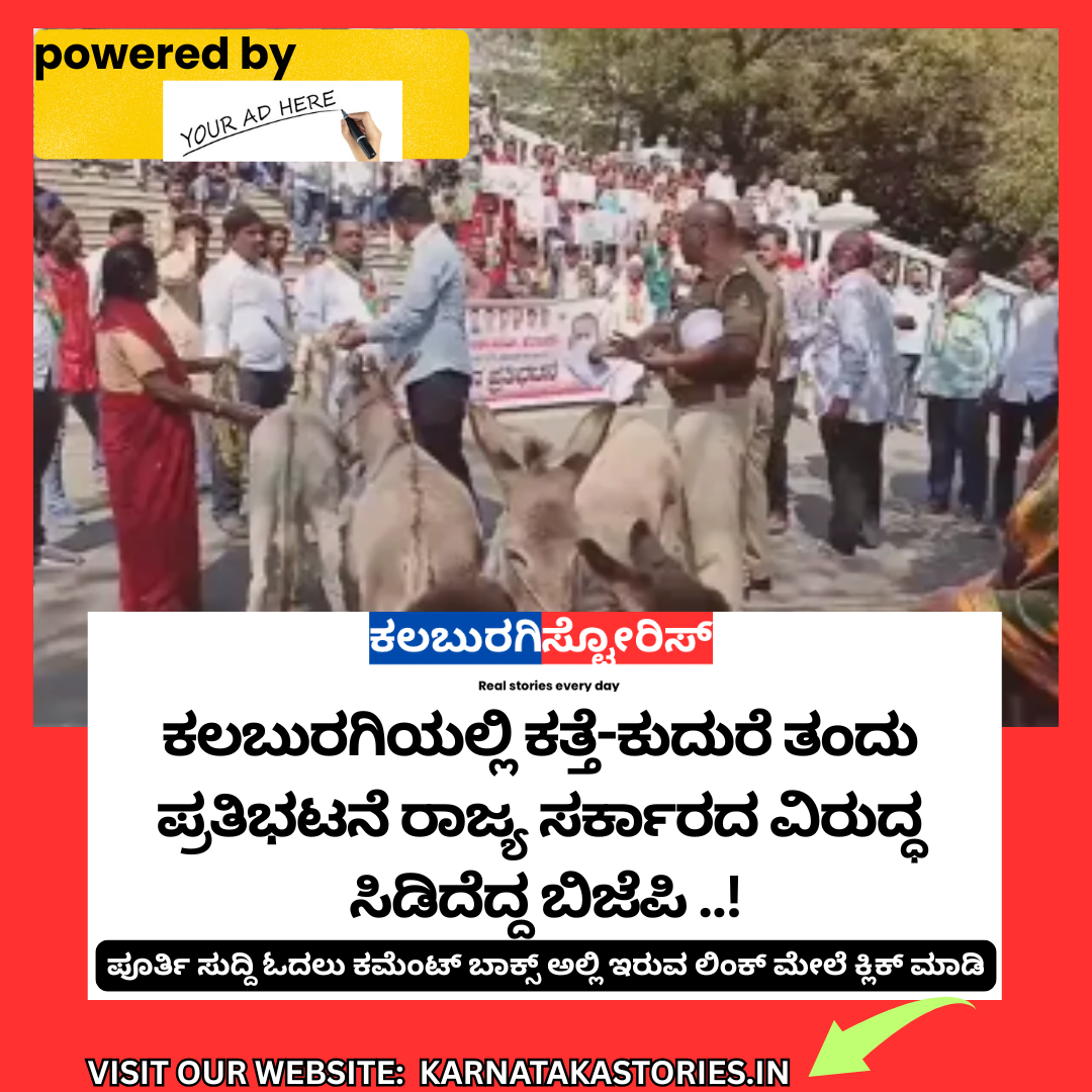 ಕಲಬುರಗಿಯಲ್ಲಿ ಕತ್ತೆ–ಕುದುರೆಯೊಂದಿಗೆ ಬಿಜೆಪಿ ಪ್ರತಿಭಟನೆ: ರಾಜ್ಯ ಸರ್ಕಾರದ ವಿರುದ್ಧ ತೀವ್ರ ಆಕ್ರೋಶ