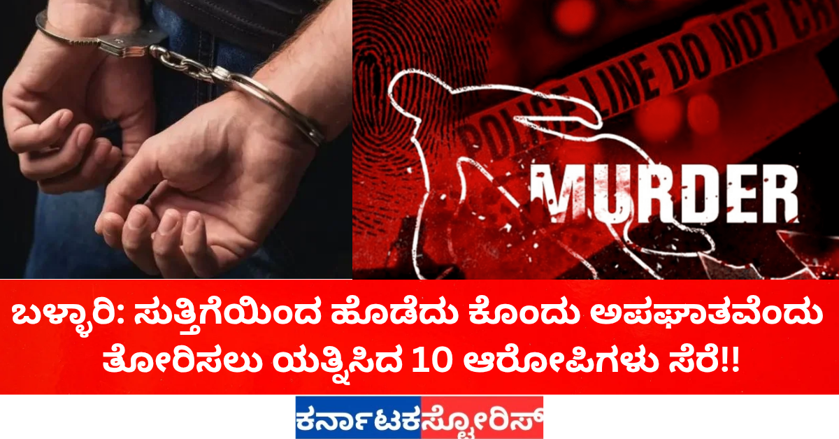 ಬಳ್ಳಾರಿ: ಸುತ್ತಿಗೆಯಿಂದ ಹೊಡೆದು ಕೊಂದು ಅಪಘಾತವೆಂದು ತೋರಿಸಲು ಯತ್ನಿಸಿದ 10 ಆರೋಪಿಗಳು ಸೆರೆ!!