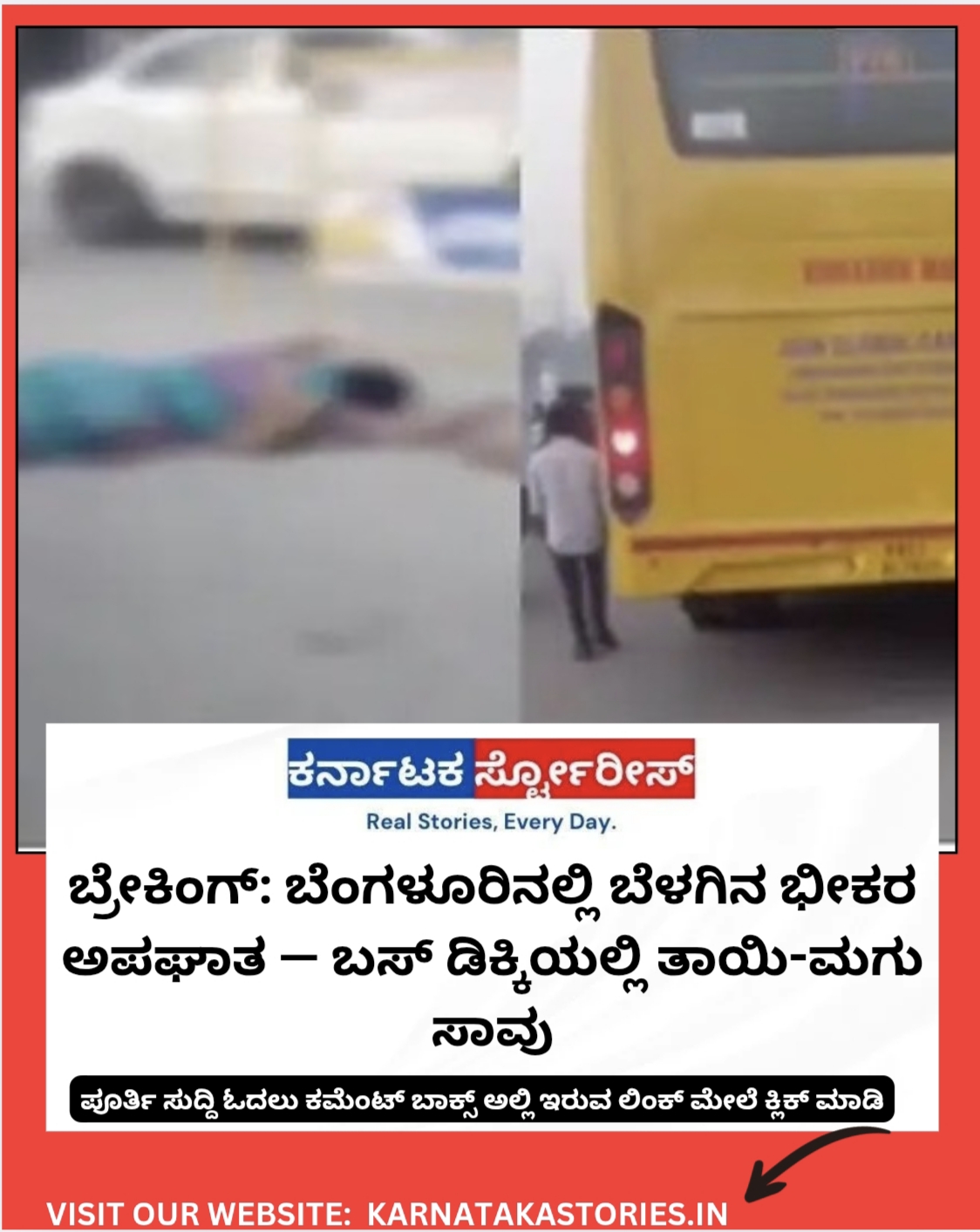 ಬೆಂಗಳೂರು: ಬೆಳಿಗ್ಗೆ ಸಂಭವಿಸಿದ ಭೀಕರ ಅಪಘಾತದಲ್ಲಿ ತಾಯಿ–ಮಗು ಸಾವು