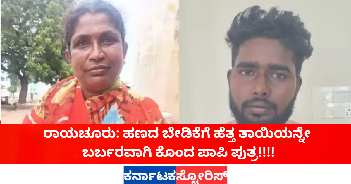 ರಾಯಚೂರು: ಹಣದ ಬೇಡಿಕೆಗೆ ಹೆತ್ತ ತಾಯಿಯನ್ನೇ ಬರ್ಬರವಾಗಿ ಕೊಂದ ಪಾಪಿ ಪುತ್ರ!!!!