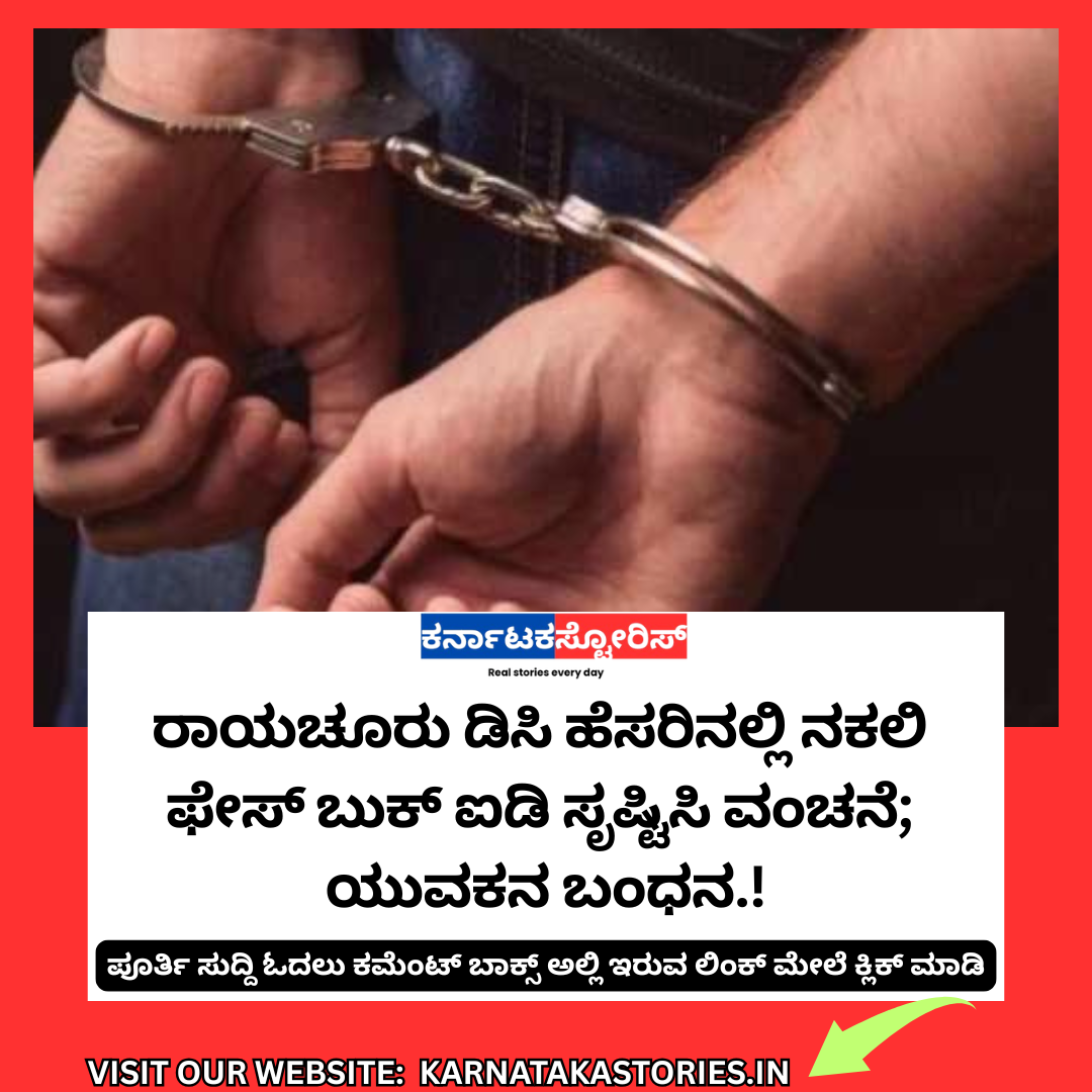 ರಾಯಚೂರು ಡಿಸಿ ಹೆಸರಿನಲ್ಲಿ ನಕಲಿ ಫೇಸ್‌ಬುಕ್ ಐಡಿ ತೆಗೆದು ಮೋಸ ; ಯುವಕನ ಬಂಧನ