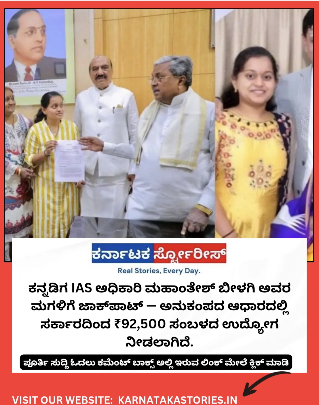 ಮಹಾಂತೇಶ್ ಬೀಳಗಿ ಪುತ್ರಿಗೆ ಅನುಕಂಪದ ಸರ್ಕಾರಿ ಹುದ್ದೆ; ಸಿಎಂ ಹಸ್ತಾಂತರ