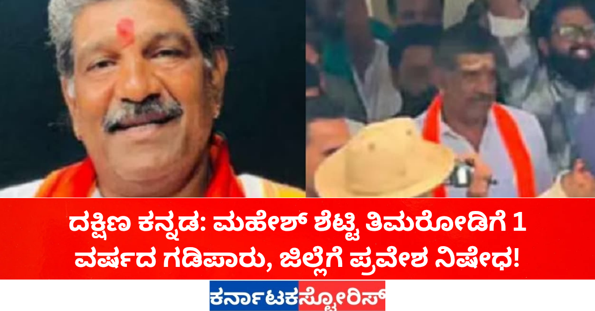 ದಕ್ಷಿಣ ಕನ್ನಡ: ಮಹೇಶ್ ಶೆಟ್ಟಿ ತಿಮರೋಡಿಗೆ 1 ವರ್ಷದ ಗಡಿಪಾರು, ಜಿಲ್ಲೆಗೆ ಪ್ರವೇಶ ನಿಷೇಧ!